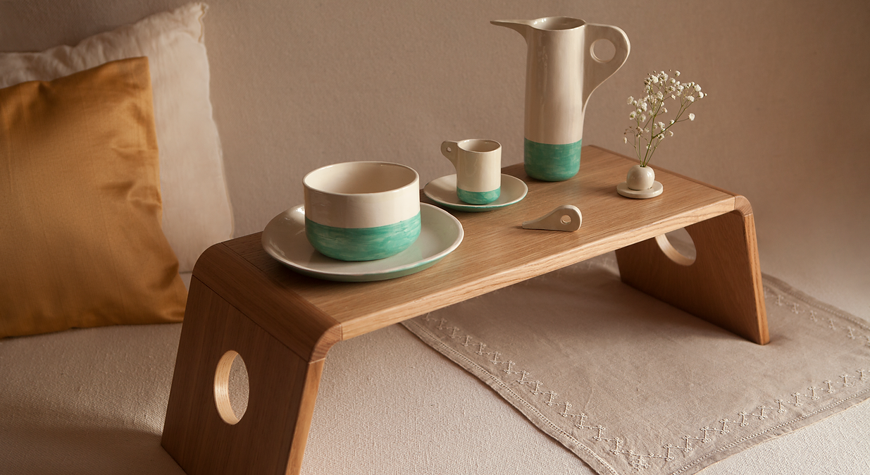 Collezione - Adagio is breakfast set handmade by Italian ceramics and wood artisans. It represents an interplay of archetypal design elements with minute attention to detail. Along with its effortless contours and exquisite craftsmanship, it lets you rediscover those pleasant rituals often forgotten in the daily grind.